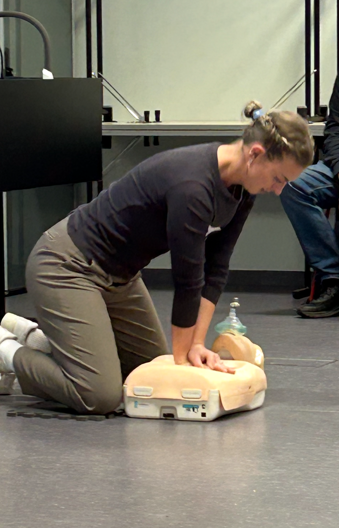 Østfoldmester i livsviktig hjerte- og lungeredning (HLR)!Lytt til tekstenStopp avspillingCatrine Espenhain Bjørsland kan smykke seg med tittelen Østfoldmester i HLR. Hun er ansatt i hjemmesykepleien i Halden kommune som samhandlingssykepleier. Publisert 01.12.2025 15:25 Sist endret 01.12.2025 15:29 27. november var flere av kommunens HLR-instruktører på fagdag i hjerte- og lungeredning i regi av Utviklingssenter for sykehjem og hjemmetjenester, Høgskolen i Østfold og Sykehuset Østfold. Der ble det arrangert en uformell konkurranse i denne livsviktige redningen. Premien var en treningsdukke som du ser på bildet.Dette må du kunneNB! Kan du dette? Du vet aldri når du kan få bruk for kunnskapen.Dersom en bevisstløs person ikke puster, eller har unormal pust, må du starte hjerte- og lungeredning (HLR).Ring 113 for hjelp.Start med å gi 30 brystkompresjoner 5-6 cm ned i brystet og i takt på 100-120 trykk per minutt. Pass på å slippe helt opp mellom hver brystkompresjon.Etter 30 brystkompresjoner bøyer du hodet til personen litt bakover og gir to innblåsninger.Deretter gjentar du 30 brystkompresjoner og to innblåsninger helt til ambulansepersonell overtar.Les alt du trenger å vite om HLR her i denne lenken: https://www.helsenorge.no/forstehjelp/hjerte-og-lungeredning/
