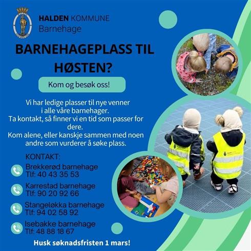 Du kan gå inn på lenkene under for å finne nyttig informasjon om barnehager. Vær obs på at disse lenkene vil ta deg ut fra denne barnehagens nettside og inn på Halden kommunes nettsider.
